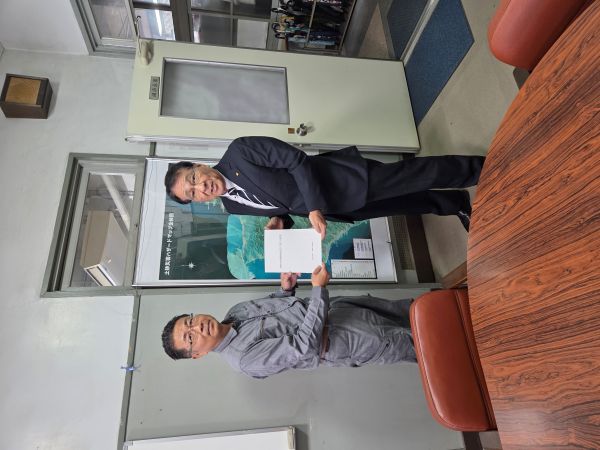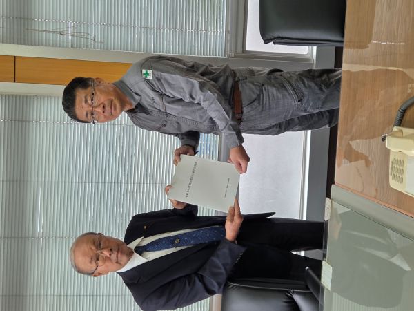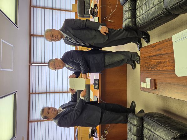 令和7年11月11日(火) 垂水市役所において、坂元副市長、梅木勇副議長に「税制改正に関する提言活動」を行いました。 (竹之内理事)